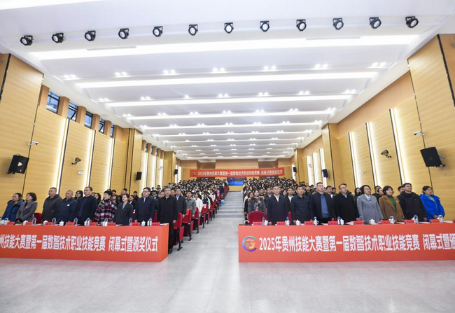| 12月29日,由贵州省大数据发展管理局、贵州省教育厅、贵州省人力资源和社会保障厅、贵州省总工会、共青团贵州省委主办,贵州传媒职业学院承办,贵州省人工智能学会、贵州鸿祥教育科技有限公司协办的“2025年贵州技能大赛暨第一届数智技术职业技能竞赛闭幕式暨颁奖仪式”,在贵州传媒职业学院隆重举行。本次大赛以“数说贵州、智在人才”为主题,历经数月筹备与角逐,圆满完成人工智能训练师、视频创推员(数字思政)等五大前沿赛项的比拼,为贵州数字经济高质量发展注入强劲人才动力。 闭幕式现场 贵州省大数据发展管理局副局长张波,凯里学院党委常委、副校长、贵州省人工智能学会理事长夏大文,贵州传媒职业学院党委书记蒋刘恩等省市相关部门领导、兄弟院校代表、企业嘉宾及参赛师生齐聚现场,共同见证赛事收官。闭幕式由贵州传媒职业学院党委委员、副院长李颖主持。 贵州传媒职业学院党委委员、副院长李颖主持闭幕式 作为数字贵州建设与新质生产力发展关键时期的技能盛会,大赛自9月启动以来,吸引全省162家单位、1821支队伍报名参赛。经过初赛严格选拔,最终每个赛项有职工组30支、学生组25支队伍晋级全省决赛。 获奖师生上台领奖 贵州传媒职业学院党委书记蒋刘恩致辞,他向在大赛中取得优异成绩的选手和代表队表示热烈祝贺;向全体裁判员、专家致以崇高的敬意;向给予本次大赛大力指导与支持的省大数据局、省教育厅、省人社厅、省总工会、团省委,以及贵州省人工智能学会等协办单位、兄弟院校、合作伙伴表示衷心感谢。 蒋刘恩表示,作为本次大赛的承办单位之一,学院积极推动传媒与科技融合,先后筹建“贵州省广电视听人工智能产业孵化园”,共建全国首家“国家广电视听人工智能学院”,着力打造“传媒+人工智能”人才培养新高地。努力培养既懂传播规律、又具数智能力的复合型人才,为“数字贵州”建设贡献“贵传”智慧。 贵州传媒职业学院党委书记蒋刘恩致欢迎词 大赛组委会副主任欧卫华教授作工作汇报,他表示,本次赛事构建了合理的组织机制,科学设项并广泛动员,竞赛期间实行封闭式管理,专业裁判团队保障评审公平,后勤技术团队护航赛事顺利推进。本次大赛成果丰硕,共评选出个人奖项108名(一等奖21名、二等奖33名、三等奖54名),以及“优秀组织奖”5个、“优秀技术支持单位”6家、“优秀工作者”10 名、“优秀裁判员”15名、“优秀指导教师”9名、“优秀指导教练”10名。 大赛组委会副主任、贵州省人工智能学会副理事长欧卫华作工作汇报 颁奖仪式上,相关领导依次为个人荣誉获得者、集体奖项获评单位及职工组、学生组各赛项获奖选手颁奖。仪式尾声,贵州省大数据发展管理局副局长张波代表主办单位致谢并祝贺获奖方。强调大赛聚焦数字人才需求,取得服务大局、淬炼人才、协同增效成效,期望以大赛为契机弘扬工匠精神,锻造数字技能人才大军,为贵州现代化实践注入动能。 贵州省大数据发展管理局副局长张波讲话并宣布大赛闭幕 此次赛事搭建起数智技能人才交流展示平台,完善人才培养机制、优化发展环境,让更多“数字工匠”助力数字贵州建设,彰显贵州加快数字人才培育、推进数字经济高质量发展的决心。 |